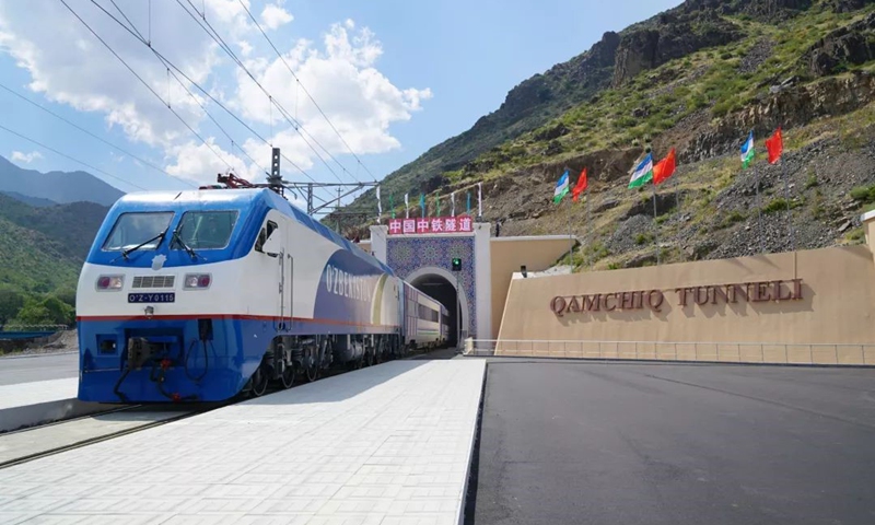 Running through the mountains in Central Asia, the Angren-Pap railway line is a milestone project between China and Uzbekistan built under the Belt and Road Initiative. It is also part of an international transport corridor along the Silk Road that links up China, Central Asia and Europe. The railway line's main tunnel, the Qamchiq Tunnel, is the first railway tunnel in Uzbekistan. Extending 19.2 kilometers, it is the longest tunnel in Uzbekistan and Central Asia. A miracle in the history of tunnel building, it is known as "President Project No.1."