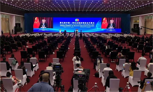 Residents buy goods at the cross-border e-commerce exhibition area at the fifth China-Arab States Expo in Northwest China's Ningxia Hui Autonomous Region on Sunday. Photo: VCG