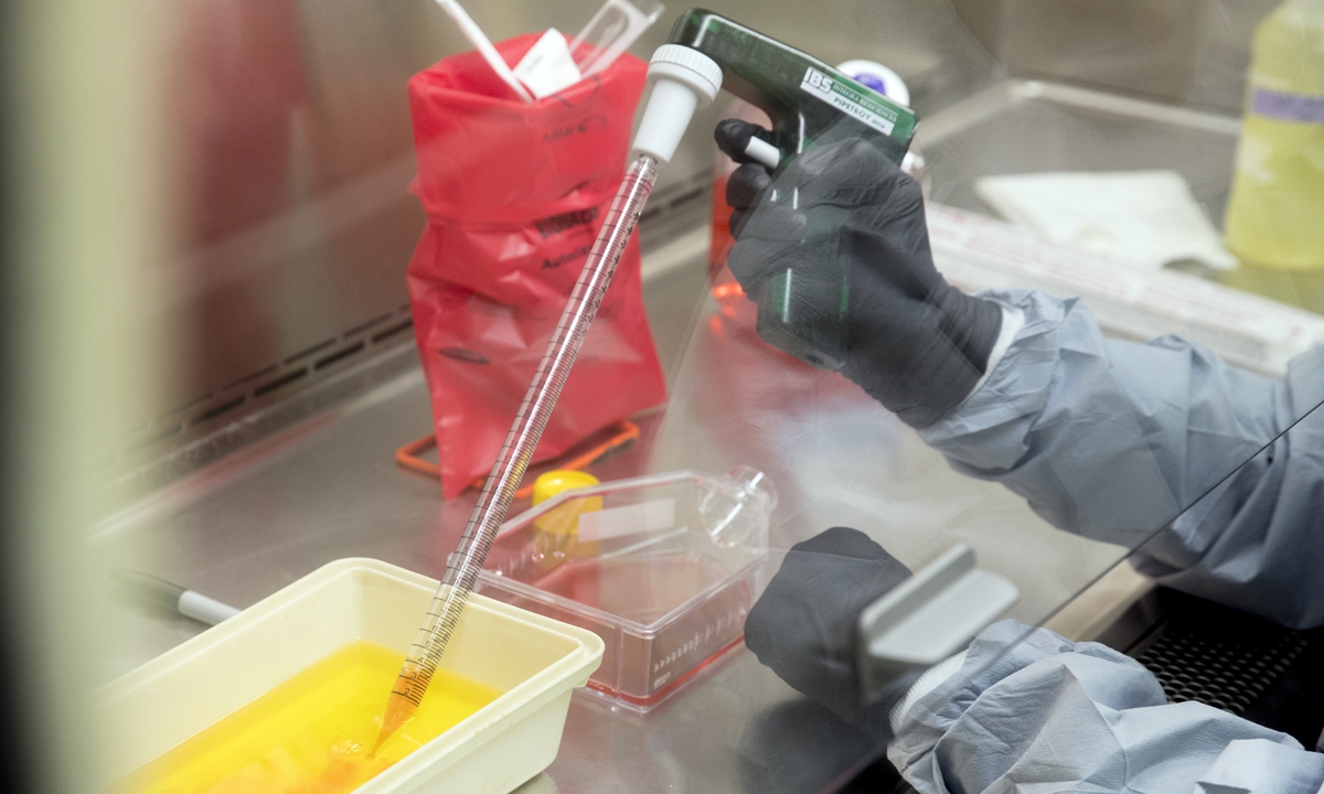 A laboratory scientist cultures coronavirus to prepare for testing at Fort Detrick. Photo: AP