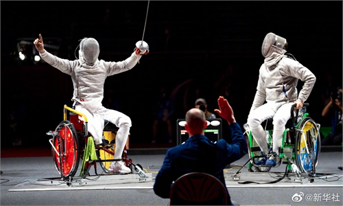 Ibrahim Hamadtou serves the ball during a table tennis match at the Tokyo Paralympic Games on Wednesday. Photo VCG