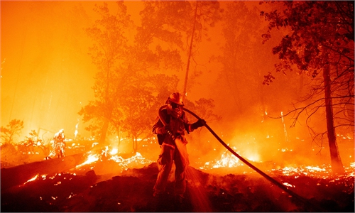 Photo taken on Aug. 19, 2021 shows an area hit by the Dixie Fire near Greenville town in Northern California, the United States.(Photo: Xinhua)