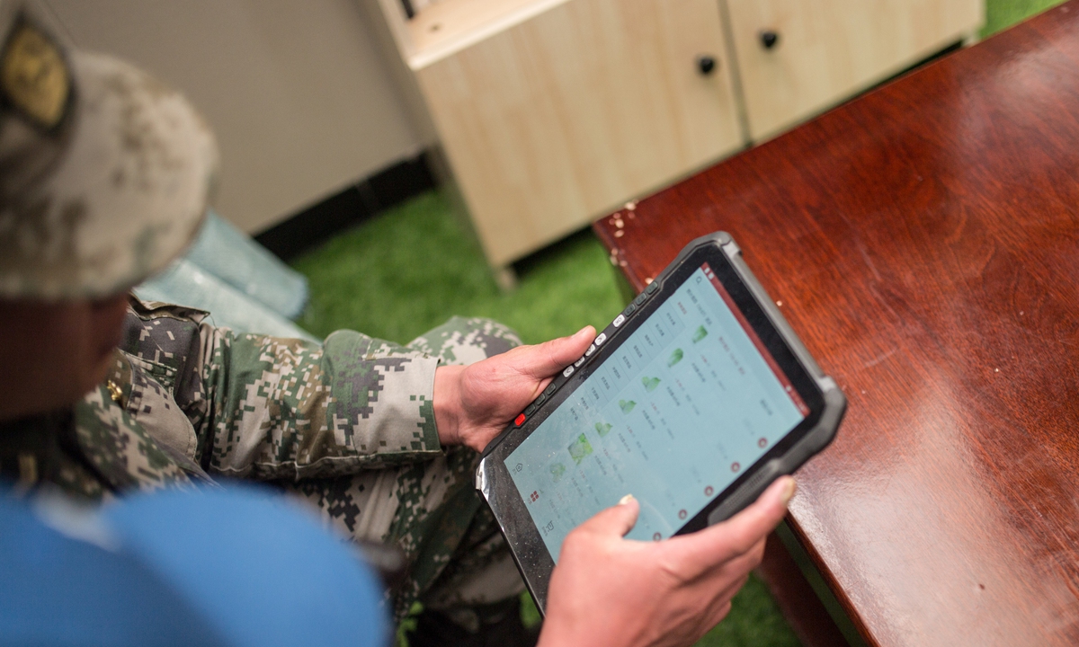 Fan Shaofu, a soldier who has been in Zhanniangshe for eight years, showcased the APP for the Global Times reporters on a tablet.