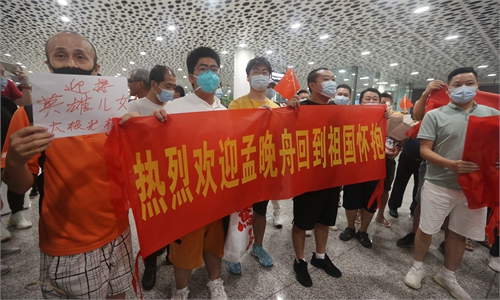 People welcome Meng Wanzhou home at Shenzhen airport Photo:Cui Meng/GT