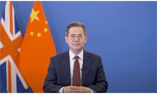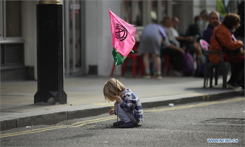 Security stops anti-Brexit activist Steve Bray approaching Britain's main opposition Labor Party leader Keir Starmer (unseen) as he walks along the seafront to attend an interview, on the second day of the annual Labor Party conference in Brighton, southern England on Sunday. Photo: AFP