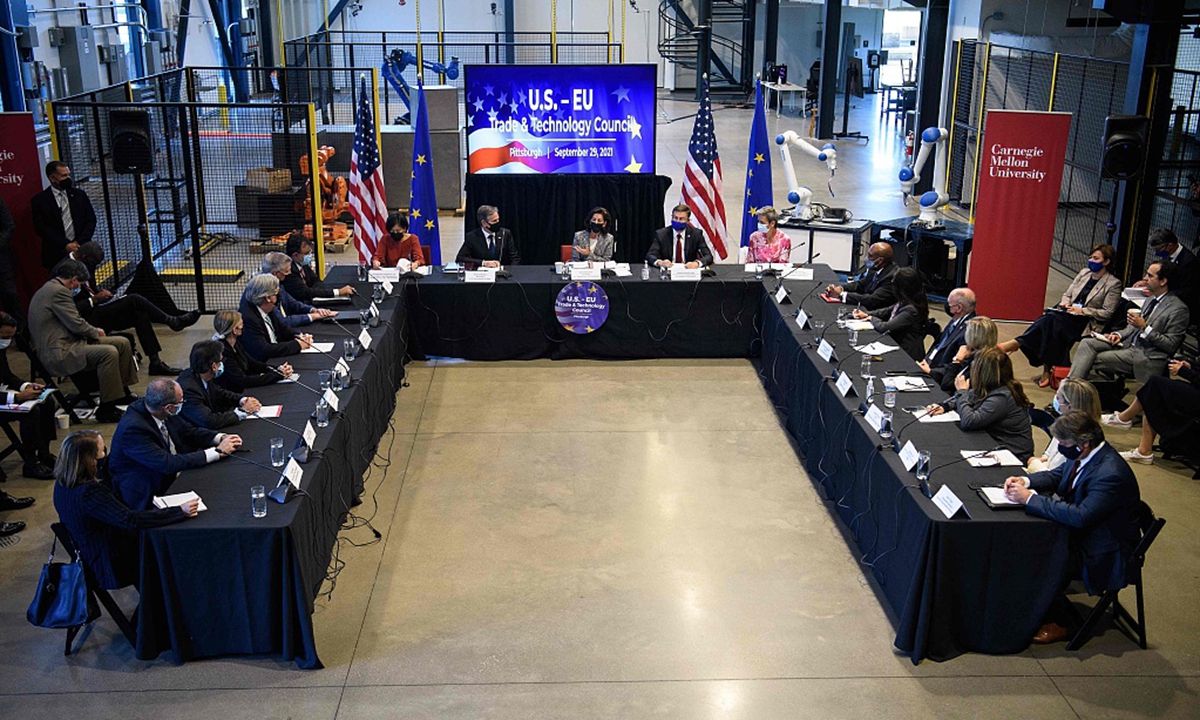 The meeting, attended by US Secretary of State Antony Blinken, Commerce Secretary Gina Raimondo, and EU trade chief Valdis Dombrovskis, also agrees to deepen cooperation to strengthen semiconductor supply chain and to take a more unified approach to regulating big, global technology firms, Reuters reported.