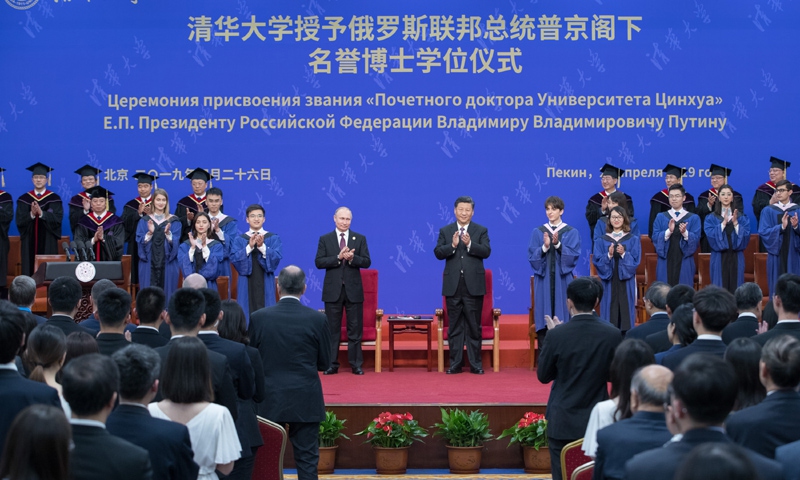 On 26 April, 2019, a special ceremony was being held at the Beijing Friendship Hotel. Amid warm applause from hundreds of teachers and students of Tsinghua University, Chinese President Xi Jinping and Russian President Vladimir Putin walked into the hall. Here the alma mater of President Xi awarded President Putin an honorary doctorate.