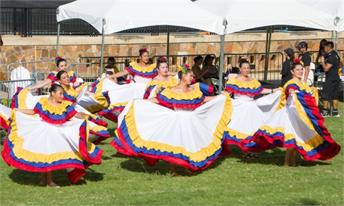 People take selfie at the Dallas Colombian Festival in Dallas, the United States, on July 24, 2021. (Photo ...
