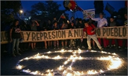People demonstrate during a protest to mark the second anniversary of months of civil uprising against social inequality in Santiago, Chile on Monday. Photo: AFP