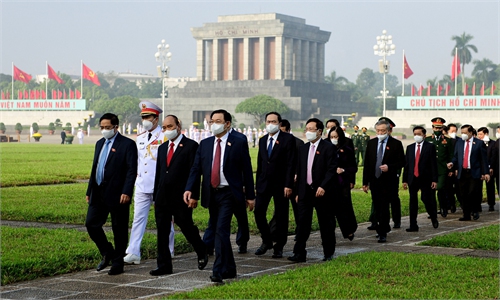 The couple, identified by local media as health workers in the town of Alappuzha in southern India's Kerala state, could be seen smiling and waving in their ceremonial clothes, as two men waded through hip-high waters to steer their pot to the temple.