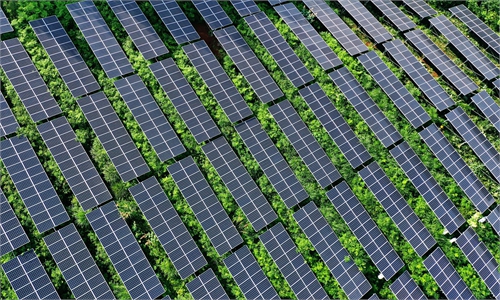A worker makes photovoltaic solar modules for export at a 5G plus smart workshop in Nantong, East China's Jiangsu Province on October 20, 2021. The workshop was built by the new-energy unit of Jiangsu Focus Group in 2020 to realize equipment and data interconnection through 5G technology, which improves production and efficiency. Photo: VCG