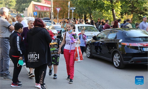 Parents stand outside a school in Sofia, Bulgaria, Sept. 15, 2021. Despite the severe COVID-19 pandemic in Bulgaria, all the 2,357 schools across the country opened their classrooms for the new school year. Photo: Xinhua