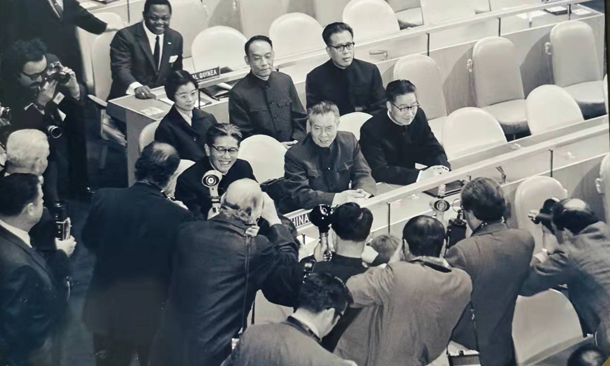 The classic photo of delegation head Qiao Guanhua's Laugh was taken at the UNGA. Tang Wensheng is in the middle behind Qiao. Photo: VCG