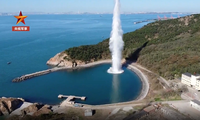 An institute under the Chinese People's Liberation Army Naval Research Academy conducts an underwater explosion test simulating an attack on a hostile high-piled wharf. This is the first time China has conducted such a test. Photo: Screenshot from China Central Television