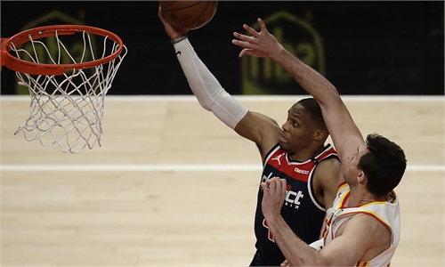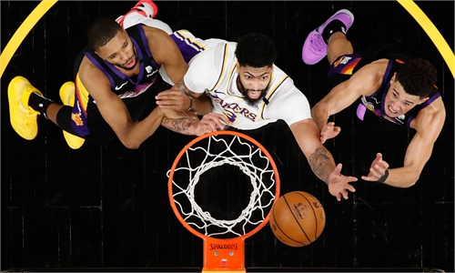 Anthony Davis (No.3) of the Los Angeles Lakers scores against the San Antonio Spurs on Tuesday in San Antonio, Texas. Photo: VCG