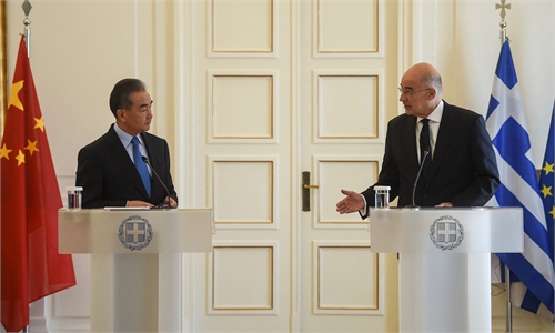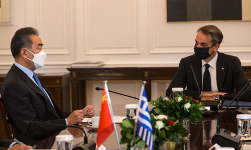 Chinese State Councilor and Foreign Minister Wang Yi met with Greek Prime Minister Kyriakos Mitsotakis in Athens on Wednesday.Photo: website of Chinese Ministry of Foreign Affairs