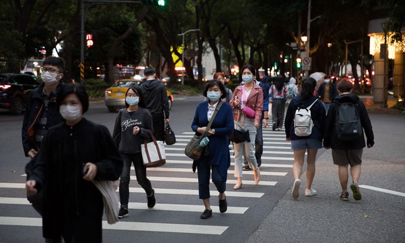 People wearing masks walk on street in Taipei, southeast China's Taiwan, March 30, 2020.(Photo: Xinhua)