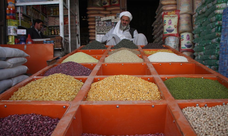 A vendor waits for customers at a market in Kabul, Afghanistan, Oct. 28, 2021.Photo:Xinhua