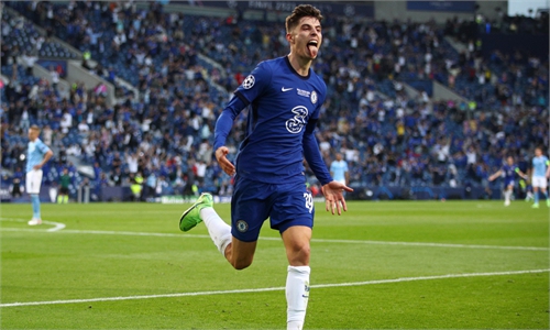 Nordi Mukiele of RB Leipzig (left) and Kylian Mbappe of PSG compete for the ball on Wednesday in Leipzig, Germany. Photo: VCG