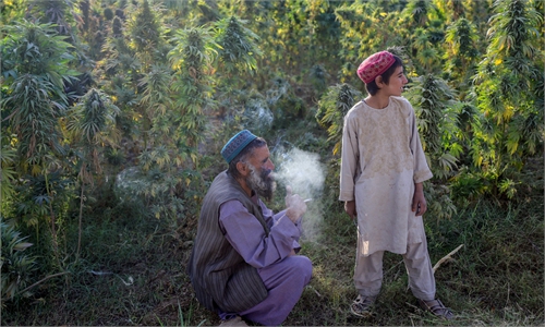 Afghan Taliban members stand guard at the site of a blast in Kabul, capital of Afghanistan, Oct. 3, 2021. At least two civilians were killed and four others wounded after an explosion occurred at the middle of a crowd outside a big mosque in Kabul, capital of Afghanistan, on Sunday, a Taliban spokesman confirmed.(Photo: Xinhua)