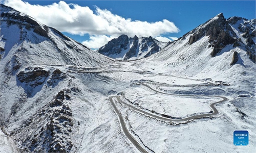 Photo taken on Nov. 6, 2021 shows the Palace Museum amid falling snow in Beijing, capital of China. Heavy snowfall swept Beijing on Saturday and brought low temperatures.Photo:Xinhua