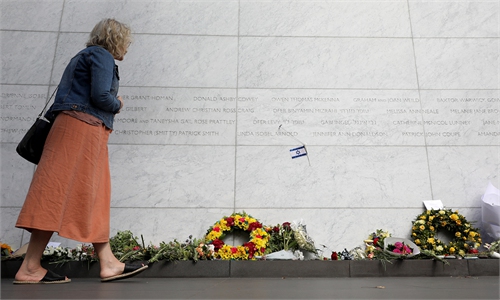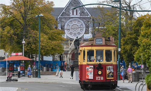 A Muslim woman holds her child on Sunday near the Dean Street mosque where worshipers were gunned down in Christchurch, two days after a shooting incident at two mosques in the city. The death toll from the shootings rose to 50, police said Sunday. Photo: AFP