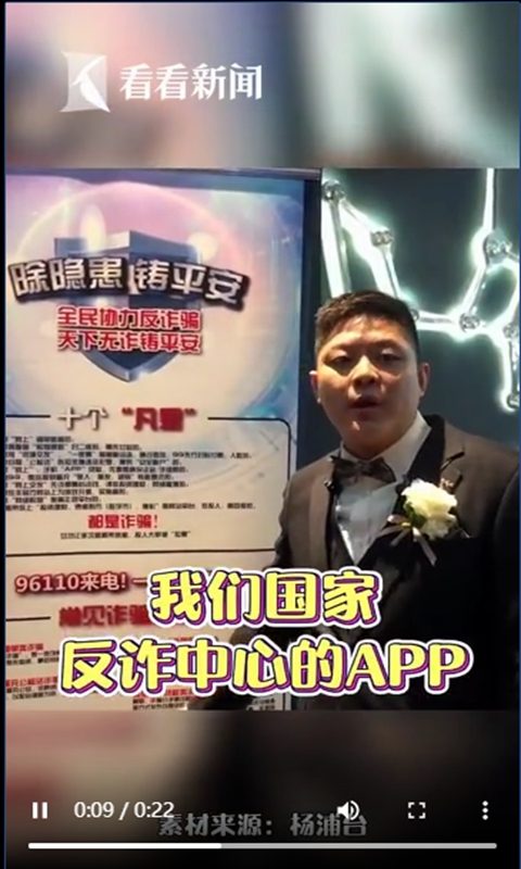 "Welcome all of you to my wedding. This is an anti-fraud poster. Pay attention to frauds and download the app if you want," said Li Cong, a policeman from the anti-fraud team of Shanghai Yangpu Public Security Bureau.