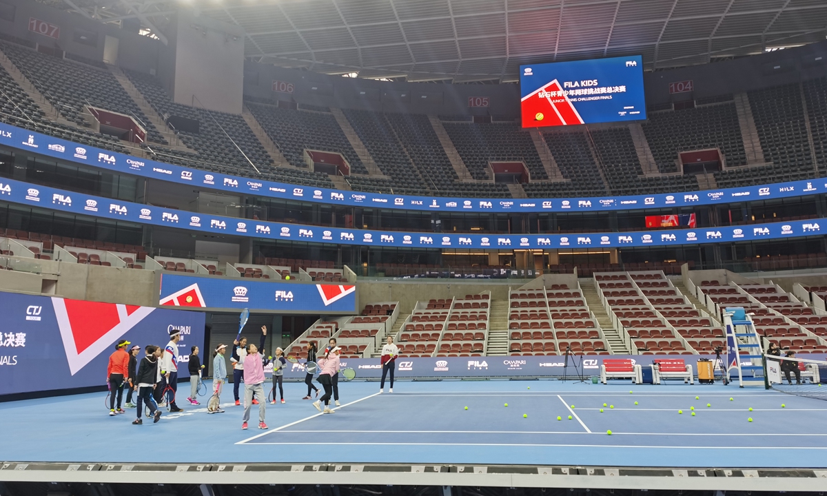 Teenager players warm up for the Fila Kids Junior Tennis Challenger Finals on November 21, 2021. Photo: Cui Meng/Global Times