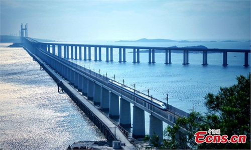 The Pingtan section of the Pingtan Strait Road-Rail Bridge, the world's longest cross-sea road-rail bridge in East China's Fujian Province, has been fully connected. The national outline on a comprehensive transportation network has planned construction of a branch route from Fuzhou in Fujian to Taipei on the island of Taiwan, a spokesperson from the Taiwan Affairs Office of the State Council said during a press briefing on Wednesday.