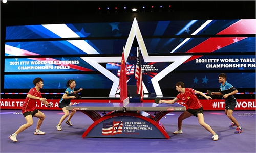 Table tennis players Lin Gaoyuan from China and Lily Zhang from the US, who formed a mixed doubles team, earned bronze medals at the 2021 World Table Tennis Championships Finals in Houston in the US state of Texas on Monday morning. The combination of Chinese and American Ping-Pong players carries great significance, as this year marks the 50th anniversary of the US and China engaging in what became known as "Ping-Pong Diplomacy."