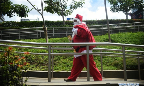 This Christmas "will be very different, especially after the dark year we've had," said another performer, who gave his name as Santa Kev.
