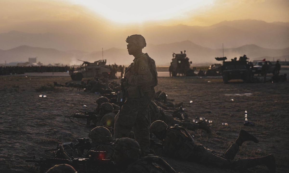 US army soldiers assigned to stand guard at Hamid Karzai International Airport, Kabul, Afghanistan on August 15, 2021. Photo: IC