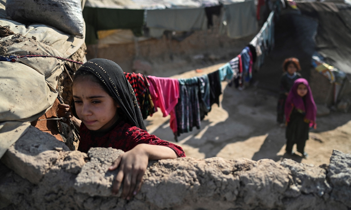 Children stand in camp on the outskirts of Herat, Afghanistan on November 22, 2021. Photo: AFP