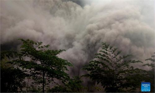 Dramatic footage showed Semeru pumping a mushroom of ash into the sky, looming ominously over screaming residents of a nearby village as they fled.