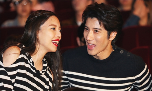 The photo taken on May 18, 2014 shows Lee Jinglei and Wang Leehom in Xi'an, Shaanxi Province. Photo: VCG
