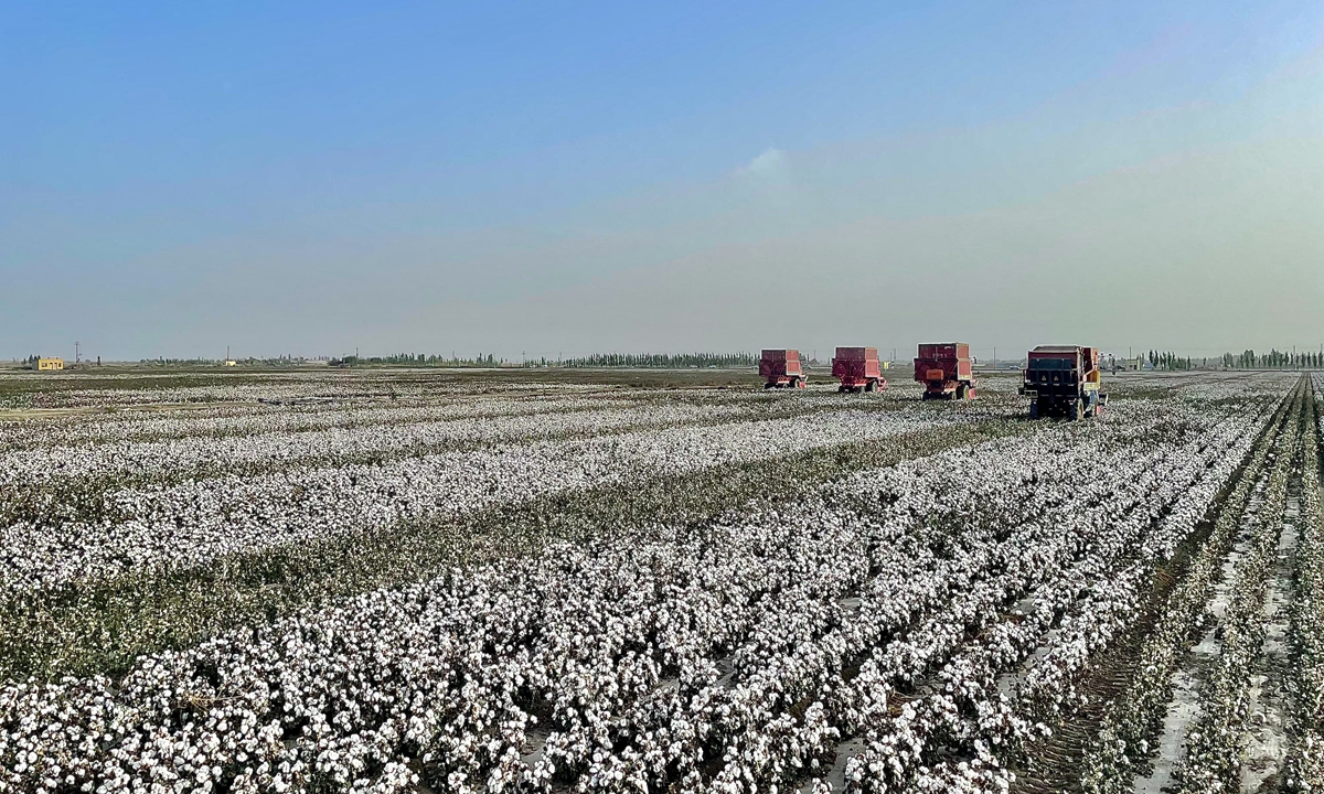 A domestically-developed automatic cotton-picking machine fleet at work in Shaya county, Aksu Region, Northwest China's Xinjiang Uygur autonomous region. Photo: Lin Luwen/GT
