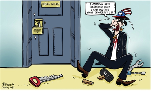 "Although the Anti-Foreign Sanctions Law has yet to be introduced to Hong Kong, the central government has shown that by resolutely implementing the law, Beijing won't sit idle in the face of foreign forces meddling in Hong Kong affairs, firing a warning shot to those forces," Lau Siu-kai, vice-president of the Chinese Association of Hong Kong and Macao Studies, told the Global Times on Thursday.