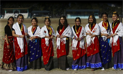 Honey hunters climb a hill carrying rope and other tools required for harvesting cliff honey in Dolakha, 115 kilometers east of Kathmandu, Nepal, on November 19, 2021. High up in the mountains, groups of men risk their lives to harvest wild honey from hives on cliffs.Photo: VCG