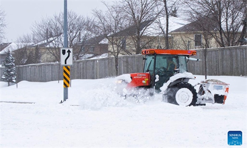 A man walks on a street during a snowy day in Toronto, Ontario, Canada, on Nov. 28, 2021.Photo:Xinhua