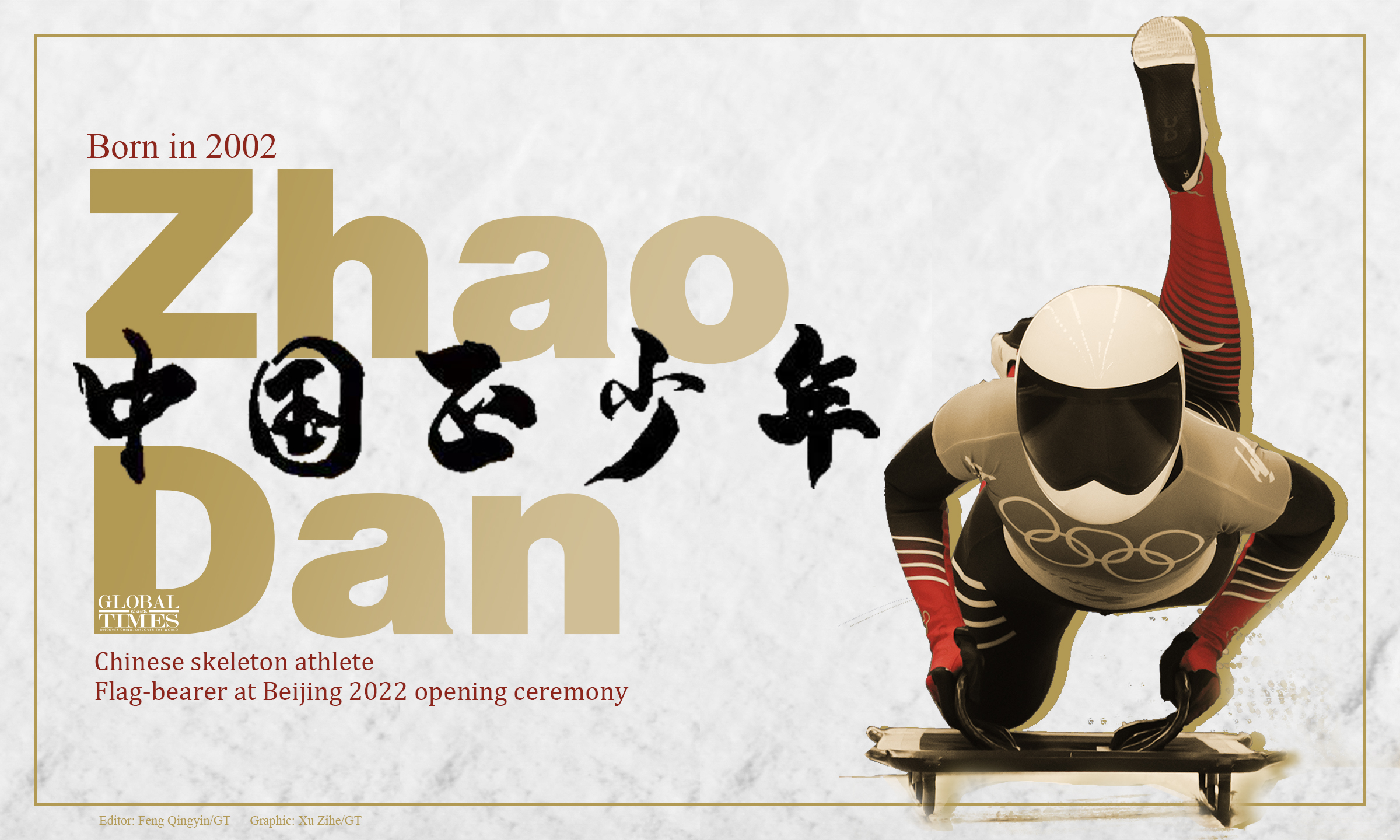 Zhao Dan, Chinese skeleton athlete and flag-bearer at Beijing 2022 opening ceremony, ranked 4th after two runs. This is the 1st time China’s female skeleton athletes have competed at the Olympics. Graphic: Xu Zihe/GT