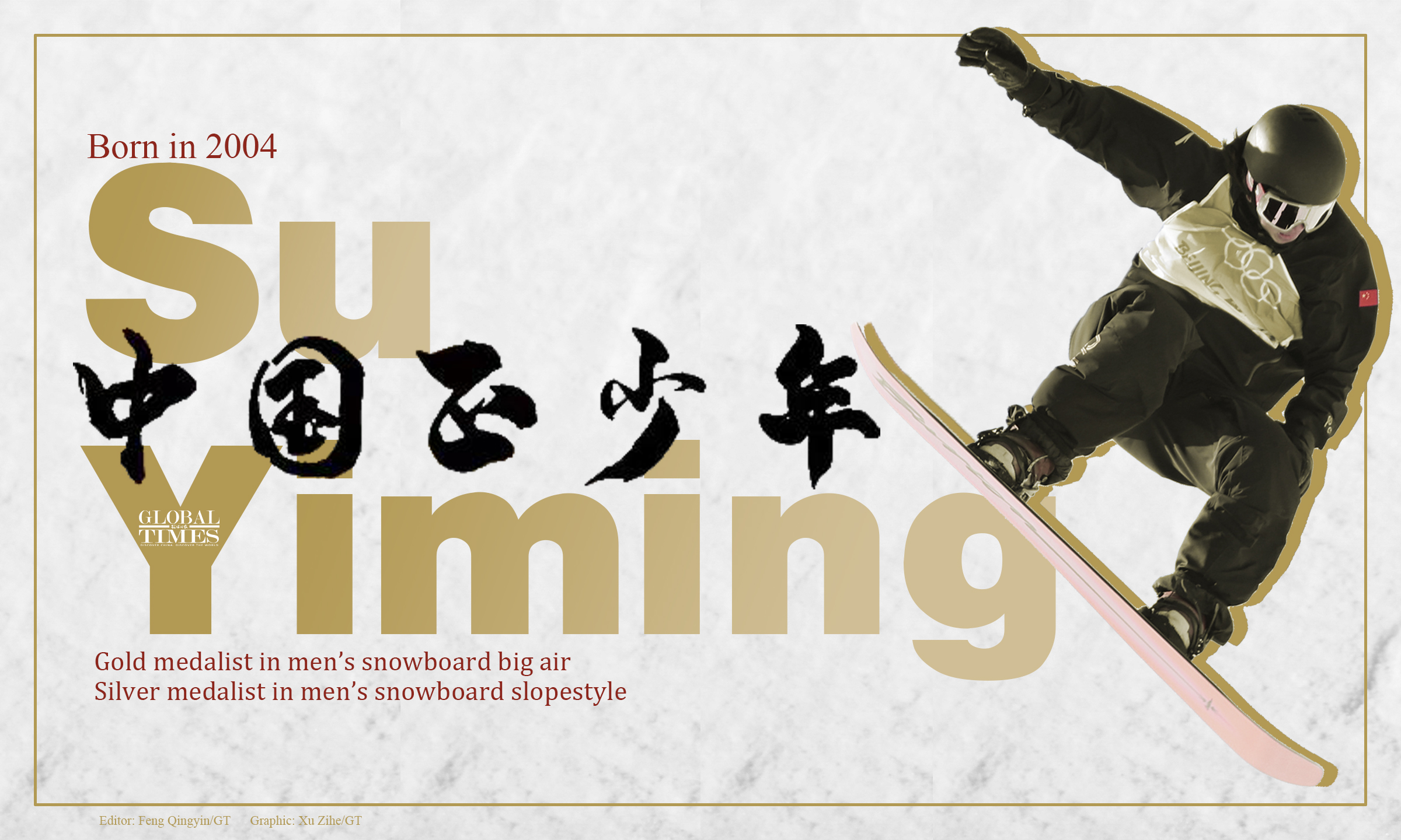 17-year-old Chinese athlete Su Yiming won the 6th gold medal for Team China in the men’s snowboard big air at Beijing 2022 on Tue. He made history by bagging one gold and one silver at this year's Olympics. Graphic: Xu Zihe/GT