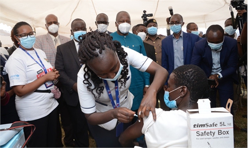 Trucks wait for the road to the Ambassador Bridge border crossing in Windsor, Canada to reopen on February 8, 2022, after protesters against a vaccination mandate blocked the road the previous night. Approximately $323 million worth of goods cross the Windsor-Detroit border each day. Photo: VCG