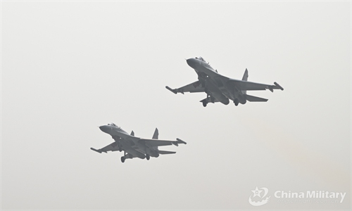 Dispatching aircraft including a KJ-2000 airborne early warning and control system, a regiment affiliated with the PLA Eastern Theater Command Air Force organized flight drills on Thursday with the goal being testing the unit's combat capabilities, PLA-Airforce Online, an official social media account of the PLA Air Force, reported on Saturday.