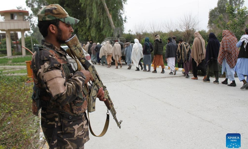 Former Afghan President Hamid Karzai speaks during a press conference, in Kabul, Afghanistan, on February 13, 2022. Karzai called a White House order freeing $3.5 billion in Afghan assets for America's 9/11 families "an atrocity against the Afghan people." He also sought the help of Americans, and in particular the families of the thousands killed on 9/11, to press the White House to rescind last week's order which he said was both "unjust and unfair." Photo: VCG