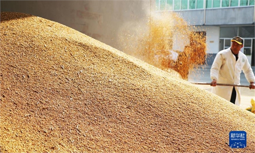 Farmers harvest early rice in Yongfeng, East China's Jiangxi Province on Tuesday. In the heat of the summer rush, farmers are busy harvesting 420,000 mu (28,000 hectares) of mature early rice to ensure that these summer grains are put into silos. China has set a grain harvest goal of 650 million metric tons and has achieved the target for six years in a row. Photo: VCG