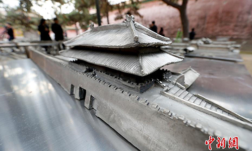 Photo taken on Nov. 11 shows a cupronickel sculpture depicting a panorama view of the Forbidden City, made by renowned artist Li Xiangqun. The sculpture is currently being exhibited at the Palace Museum in Beijing. It will also be displayed at other museums in Shanghai and other countries once the Beijing exhibition closes. (Photo: Du Yang/China News Services)