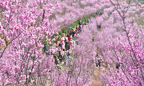 Photo taken on March 6, 2022 shows the spring scenery seen from the Nishihirabatake Park in Kanagawa, Japan. (Photo by Gong Xiuxi/Xinhua)