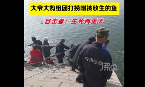 Some citizens planned to release fish for free on the banks of the Han River in Xiangyang, Central ...
