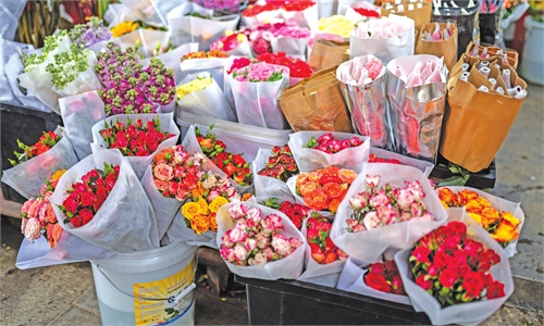 Young women wearing hanfu, the traditional clothing of the Han ethnic group, worship "flower god" during a ceremony of Huachao Festival at Yantai Mountain scenic spot, Fuzhou, southeast China's Fujian Province. (Photo: China News Service/Lv Ming)