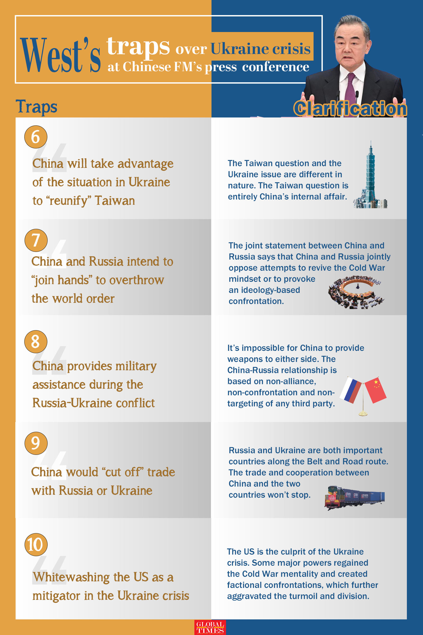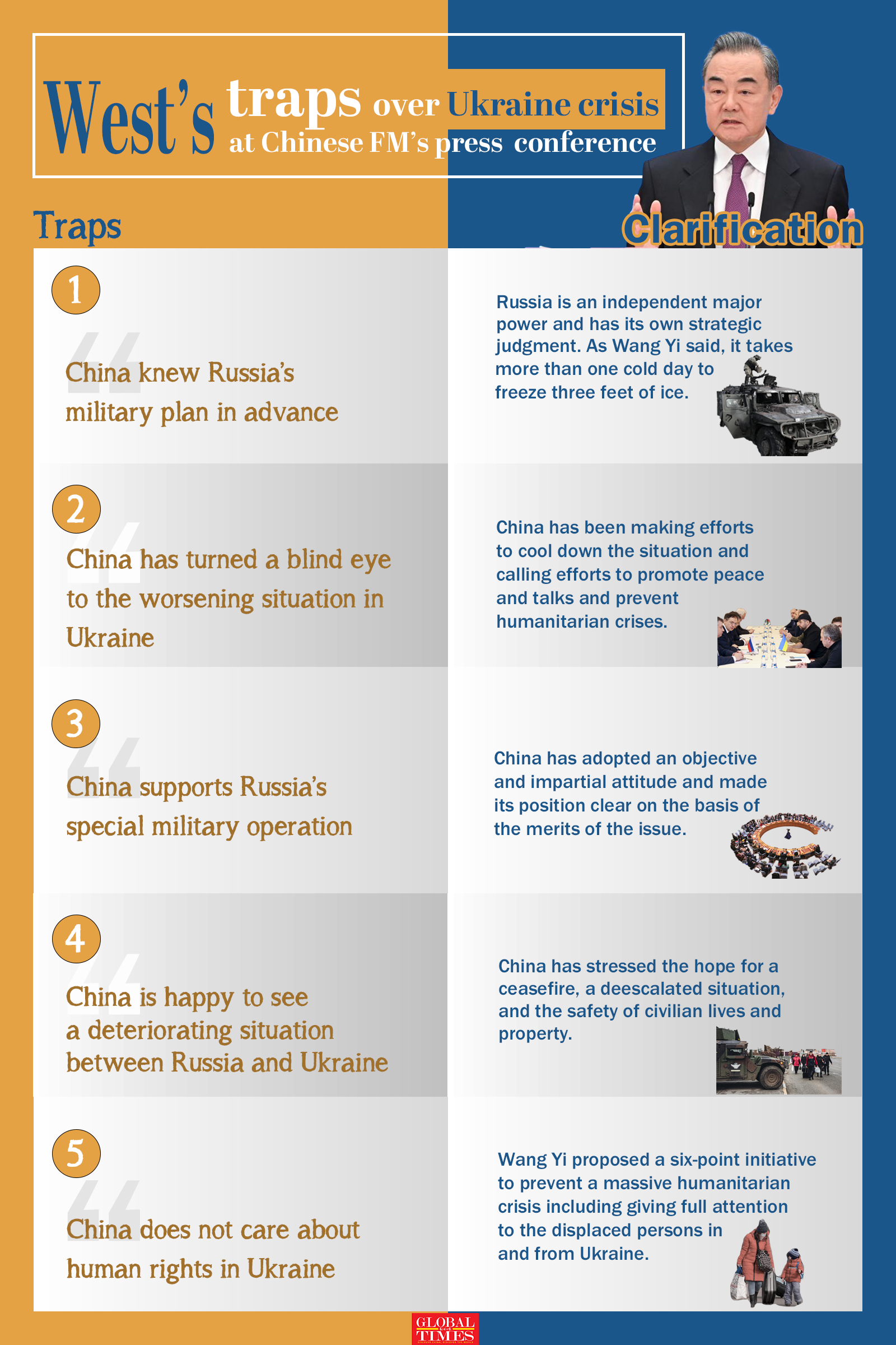 West's ‘discourse traps’over Ukraine crisis at Chinese FM's press conference Graphic: Feng Qingyin/GT