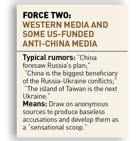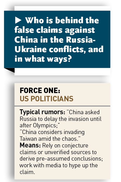 Click here to stay tuned with our live updates on Ukraine tensions. False claims targeting China have seen a new wave of proliferation after the outbreak of the Russia-Ukraine conflict, as the Global Times discovers that the usual suspects in the disinformation war - senior US officials, Western media outlets, internet trolls from the island of Taiwan - have ganged up to campaign against and scapegoat China.